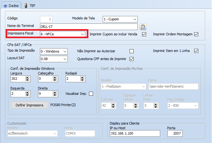 Será apresentada uma tela com as configurações necessárias.